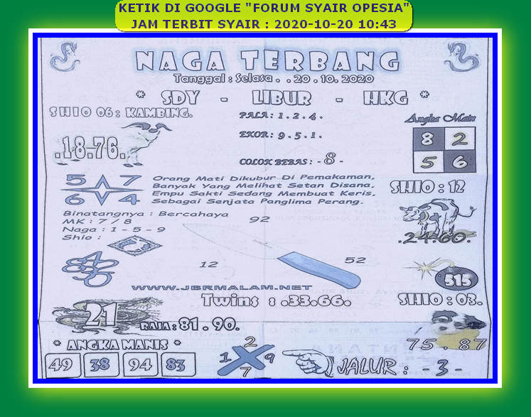 Syair HK Selasa 20 oktober 2020 Royal Syair