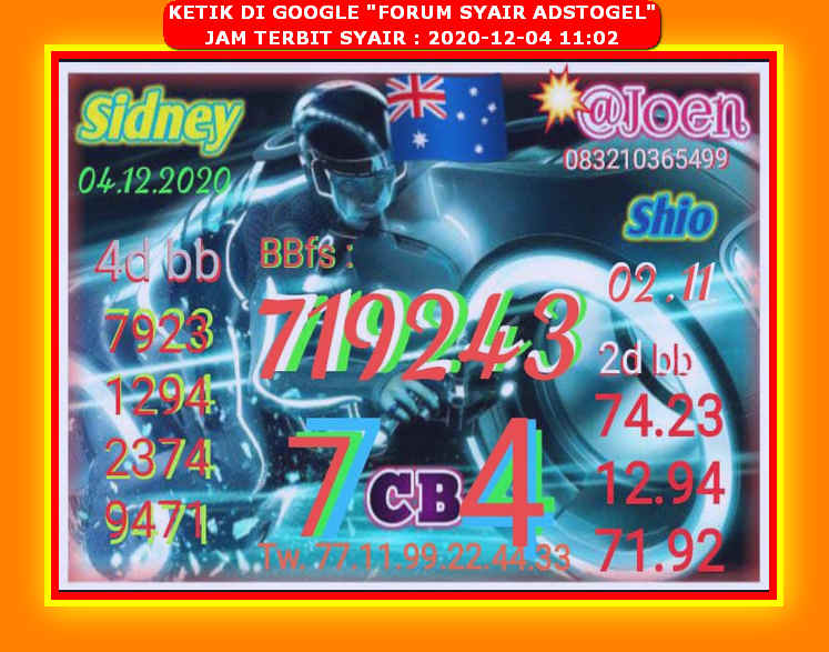 Prediksi Sydney Jumat 14 Mei 2021 Berbagai prediksi togel disertai dengan gambar terlengkap hari ini dari situs prediksitogeljp. Bocoran Togel Sidney Hari Ini Kamis 14 Mei 2020 di situs ini bisa dengan mudah dan gratis Anda dapatkan. FORUM SYAIR Sdy 6 Mei 2023 Forum syair sydney hari ini atau Forum Syair Sdy ialah kumpulan Gambar kode syair sdy terjitu yang saat ini mempunyai pengaruh besar kepada para pemain togel sdy untuk mendapatkan angka jitu sidni hari ini pada wap Forum kode syair Toto sdy Vip .. Ada beberapa kode syair togel sydney yang sekira nya sudah berpengalaman serta memiliki banyak pengikut .